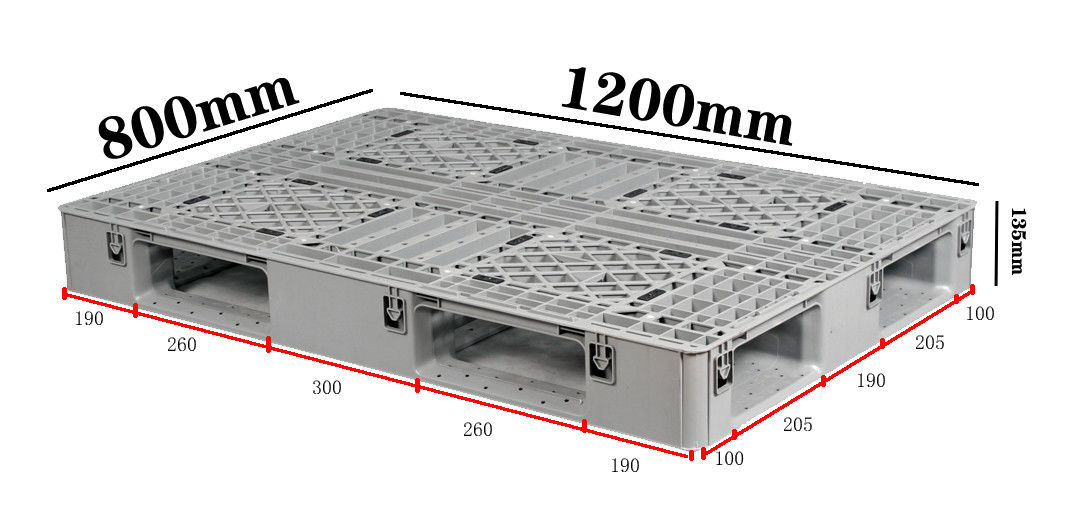 พาเลทพลาสติกทำจากโพลีเอทิลีนบริสุทธิ์ความหนาแน่นสูงเพื่ออายุการใช้งานที่ยาวนาน และวัสดุบริสุทธิ์ยังคงมีมิติที่เสถียรในช่วงอุณหภูมิ -40°F ถึง +140°F (ระยะสั้นถึง +194°F) (-40°C ถึง +60°C, ระยะสั้นถึง +90°C) การฉีดขึ้นรูปครั้งเดียว แข็งแรงและทนทาน
